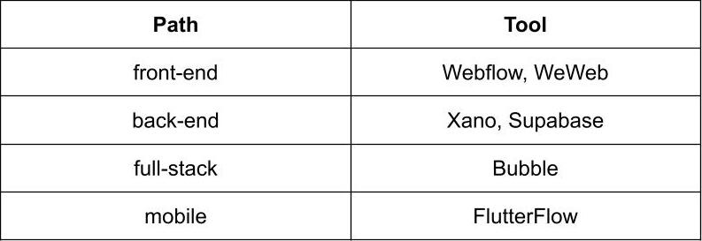 If you have completed the CS50 course and regret that it ended so quickly, it means it's a good time to choose a specialization. No-code technologies focus mainly on web development so that you can select front-end, back-end, or full-stack. Additionally, there is a category for mobile app development, but I won't pretend to be an expert in that area, so I'll leave it out of this discussion.