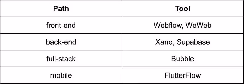 If you have completed the CS50 course and regret that it ended so quickly, it means it's a good time to choose a specialization. No-code technologies focus mainly on web development so that you can select front-end, back-end, or full-stack. Additionally, there is a category for mobile app development, but I won't pretend to be an expert in that area, so I'll leave it out of this discussion.