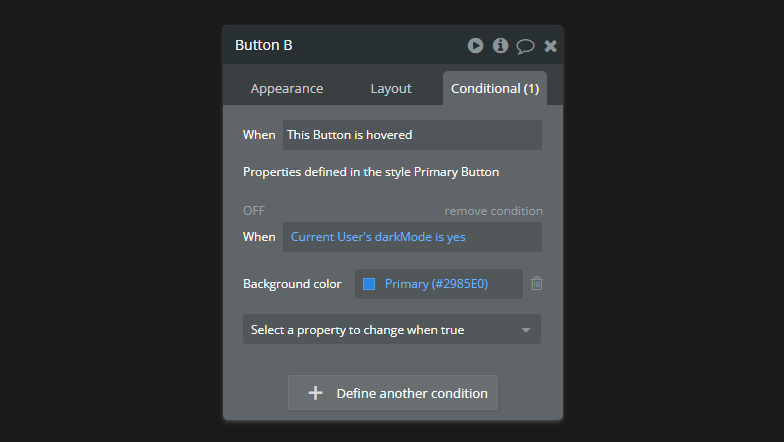 W internecie możesz znaleźć wiele poradników na temat “jak dodać dark mode do aplikacji Bubble”. Większość z nich opiera się na prostej koncepcji dodawania wyrażeń warunkowych (conditionals) do każdego elementu z osobna.
